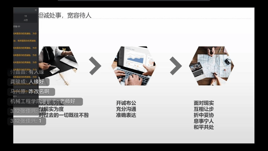 2022届学生即将正式步入职场,人际关系的处理是适应职场的第一步,为了帮助同学们更快的适应职场,学会与人沟通的方法和技巧,5月27日,工商管理学院组织2022届毕业生参加由校就业创业指导中心组织的题为“建立和谐人际关系”的线上讲座,由就业指导中心教师王姣主讲,全体2022届毕业生参加了此次活动。